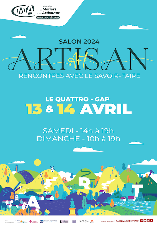 Le Salon Artisan'Art vous attend les 12 et 13 avril au Quattro à GAP ! Dès 10h, venez découvrir le travail de 26 artisans d’art et 9 artisans de bouche qui partageront leur passion et leur savoir-faire. Ce véritable rendez-vous haut-alpin attire chaque année plus de 2 500 visiteurs, autour de créations originales, de dégustations et d'animations mettant à l'honneur l'artisanat local !