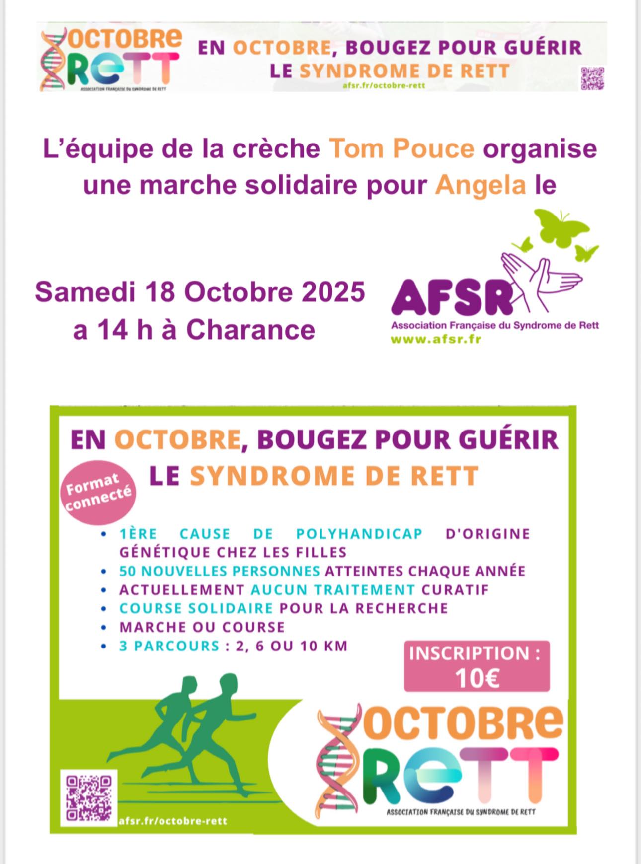 L’inscription est de 10 euros, les fonds seront reversés à l’AFSR, Association Française du Syndrome de Rett.