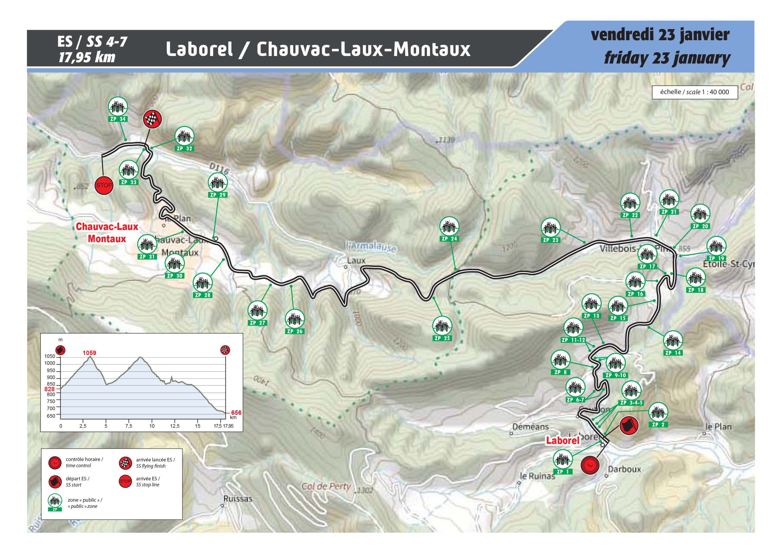 L’ES 4 et l’ES 7 de 17.95 km entre Laborel et Chauvac Laux Montaux à 9h04 puis 15h16.