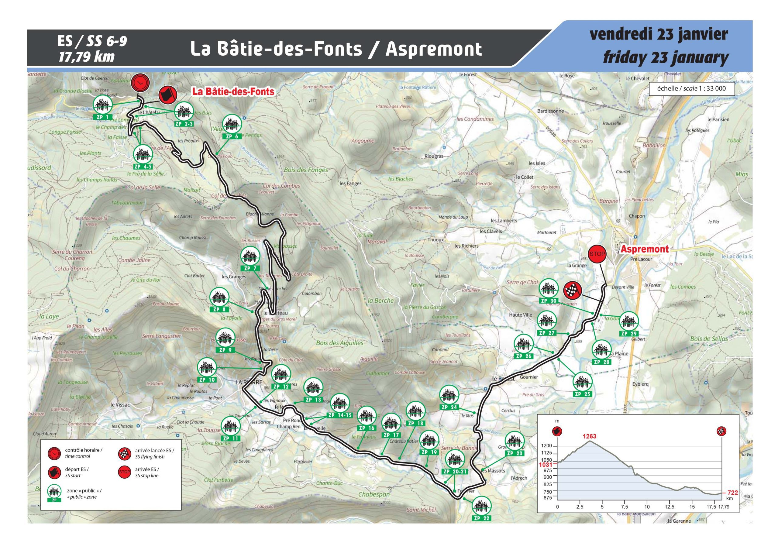 Enfin, La Bâtie des Font-Aspremont, de 17.79 km, pour les ES 6 et 9 avec des départs à 11h50 et 18h05.